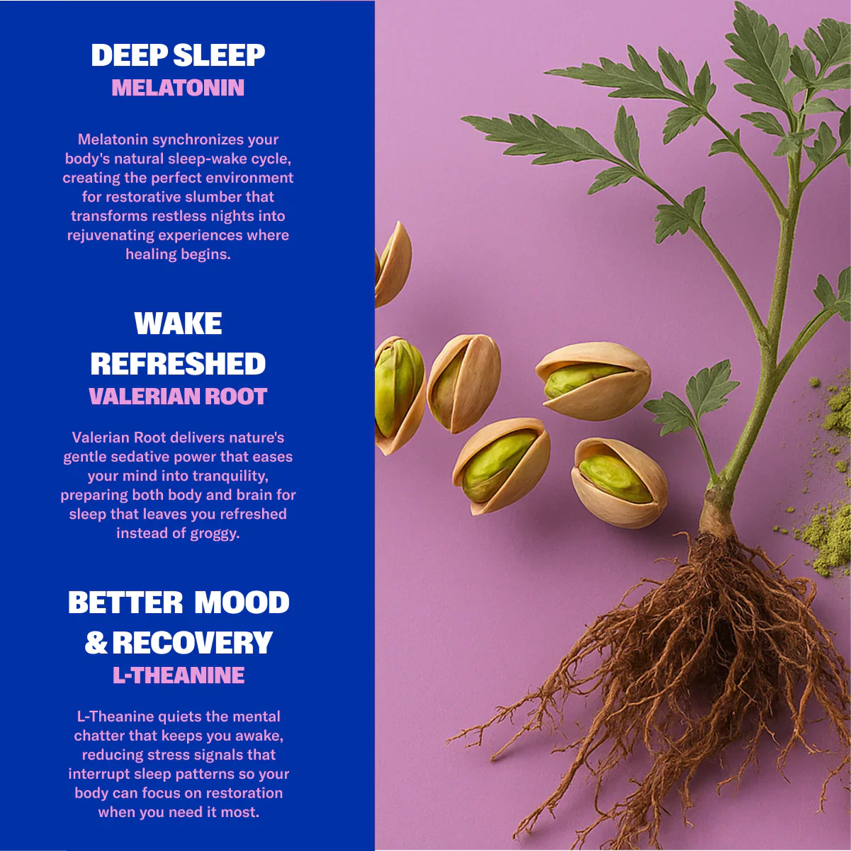 Des ingrédients naturels apaisants pour aider votre esprit à se détendre et régler votre horloge biologique pour vous endormir rapidement.